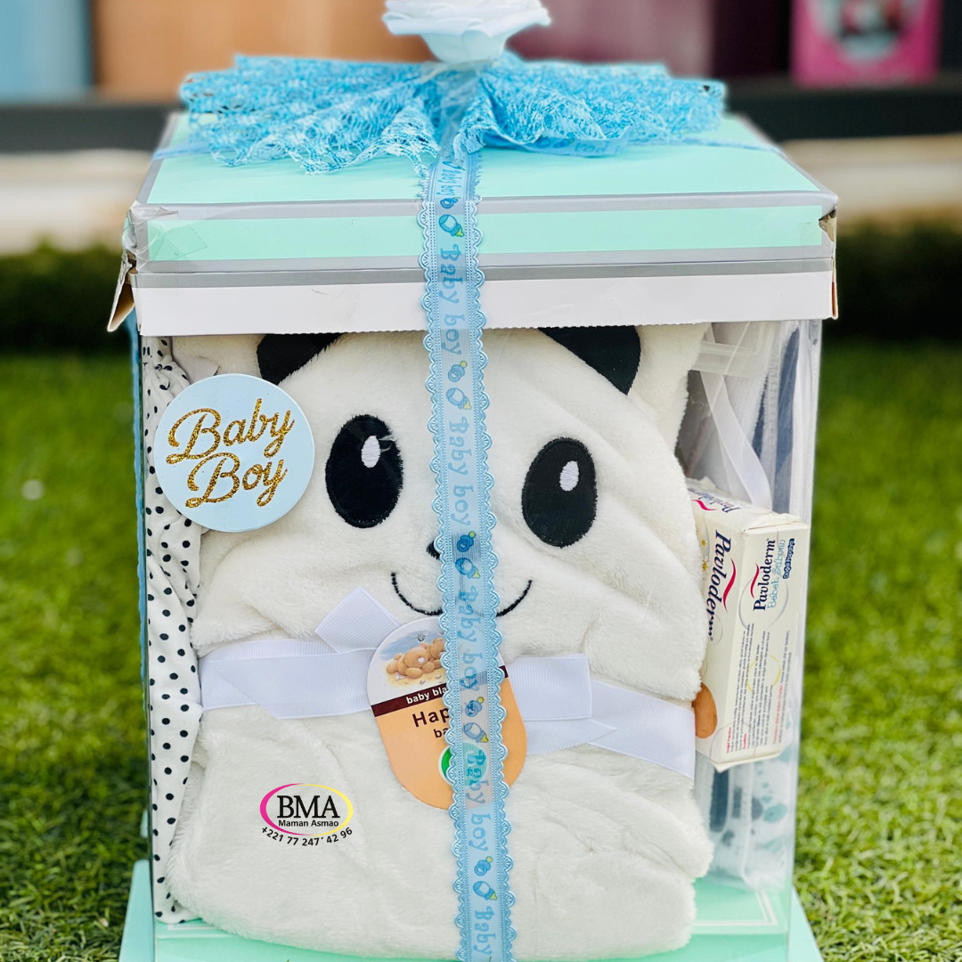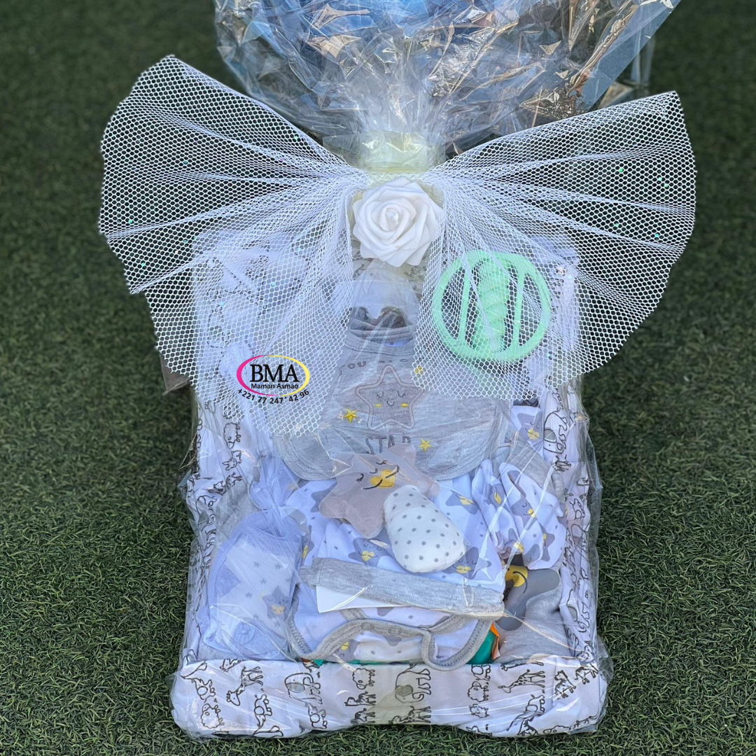 La Box Naissance est pensée pour offrir un cadeau complet, utile et élégant aux jeunes parents. Chaque box contient une sélection d’articles soigneusement choisis : vêtements confortables, accessoires indispensables, et un petit jouet. Présentée dans une jolie boîte et raffinée, elle est parfaite pour une visite à la maternité, un cadeau de naissance ou une surprise spéciale pour les futurs parents.