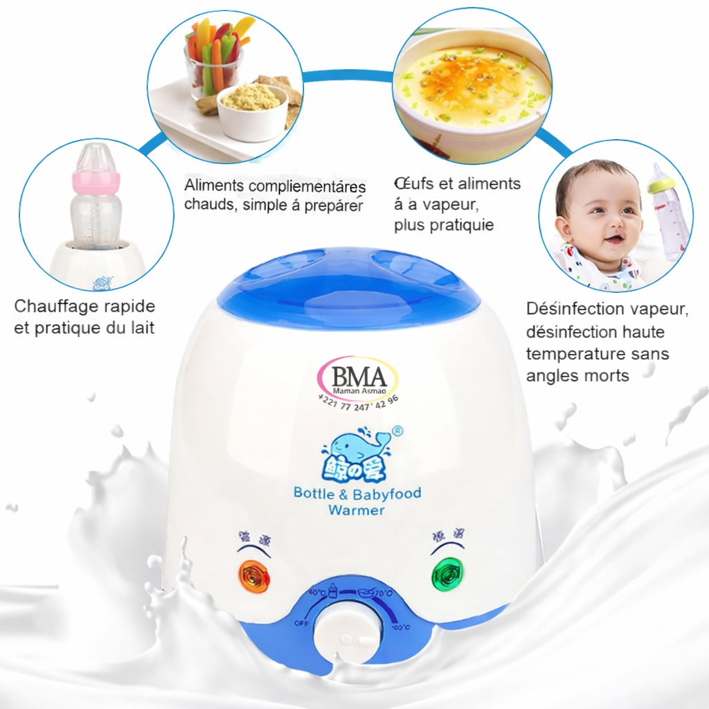 • Polyvalence Il peut être utilisé pour réchauffer de l’eau, du lait maternel, des préparations pour nourrissons et des aliments pour bébés, et il s’adapte à la plupart des tailles de biberons.