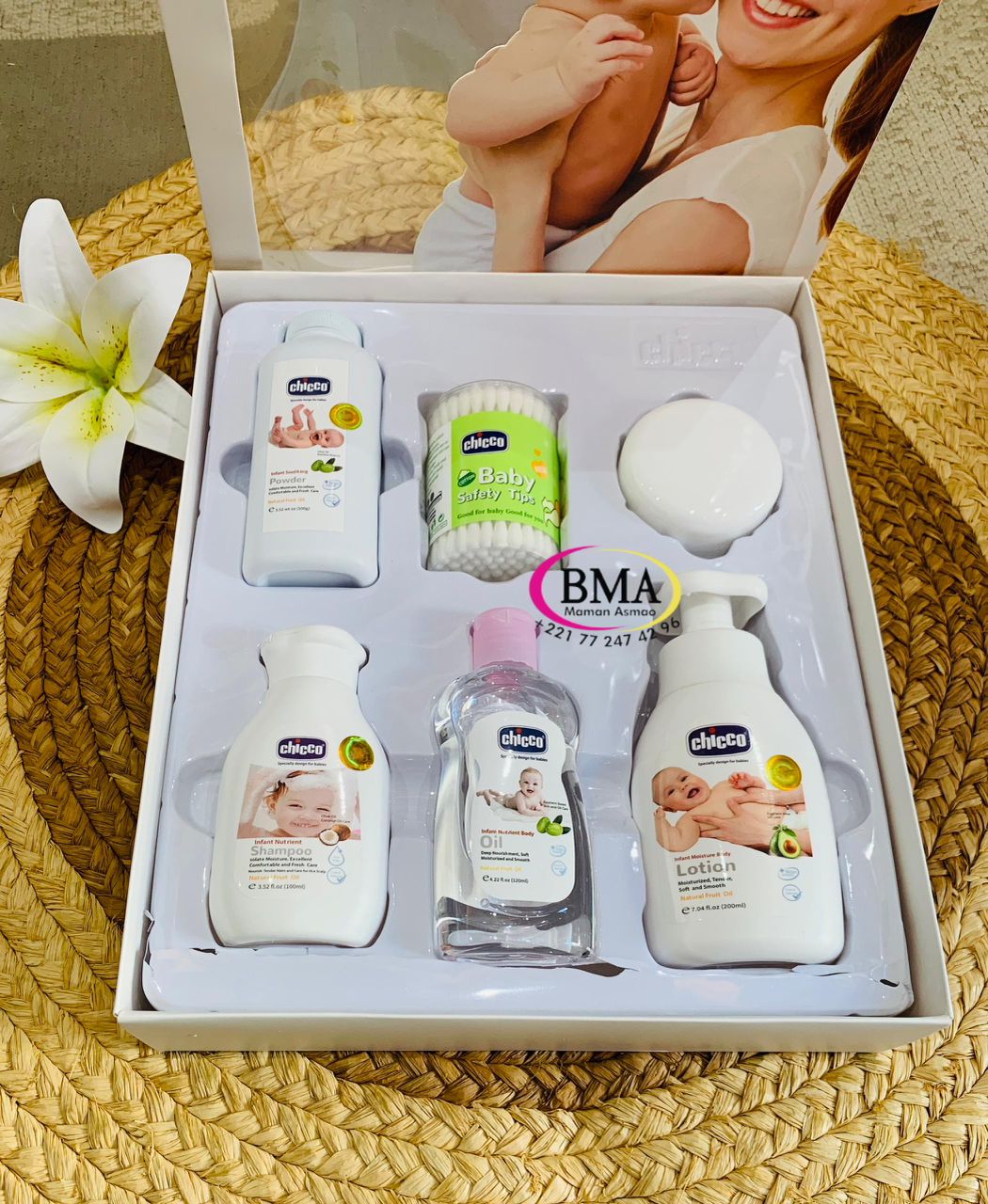Offrez un présent raffiné, pratique et empreint de tendresse avec ce coffret naissance Chicco, pensé pour respecter et protéger la peau sensible des nouveau-nés dès les premiers jours. Présenté dans un écrin élégant, il constitue une excellente idée cadeau pour une naissance, une baby shower ou une visite à la maternité.