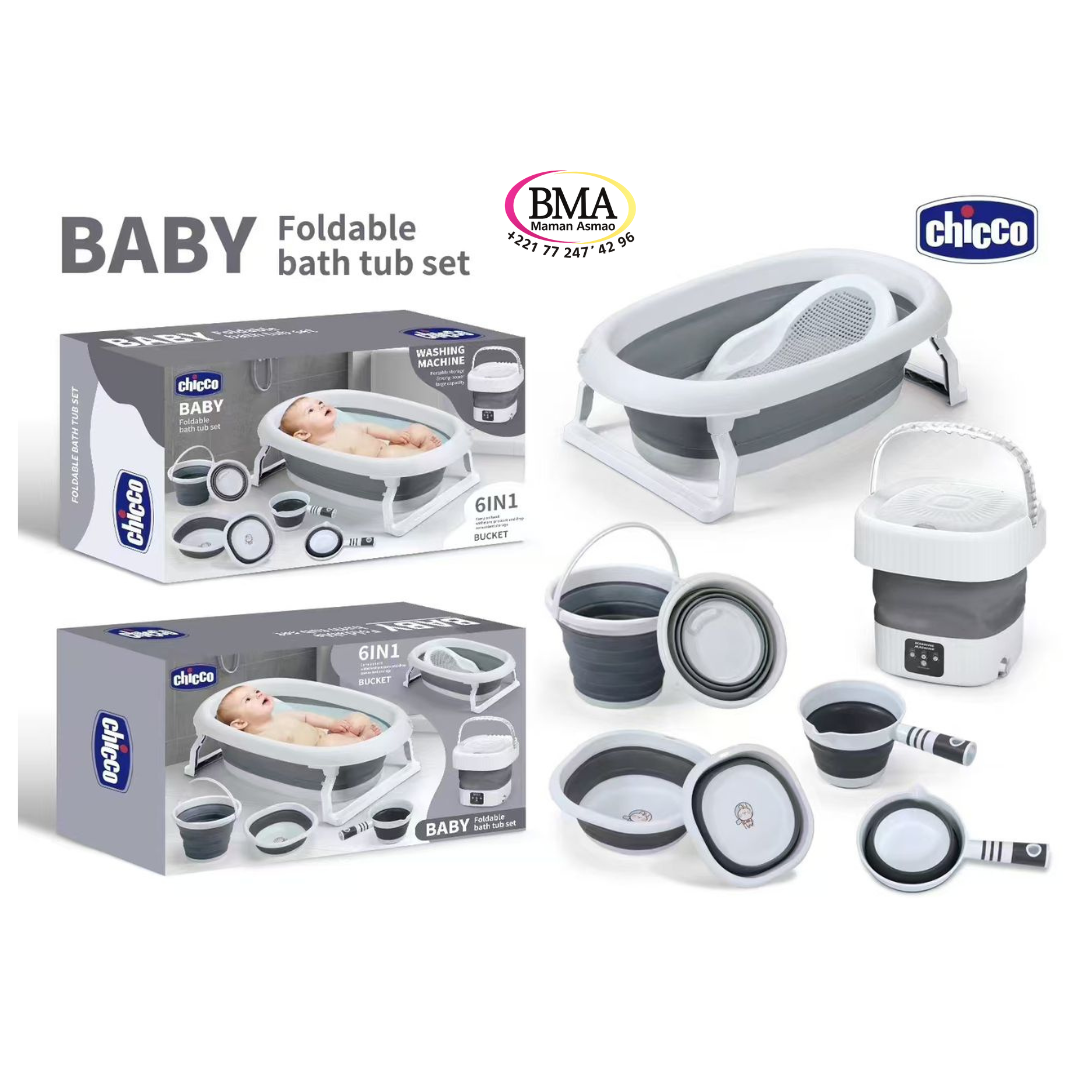 Ensemble baignoire pliable Chicco 6en1 avec mini machine à laver