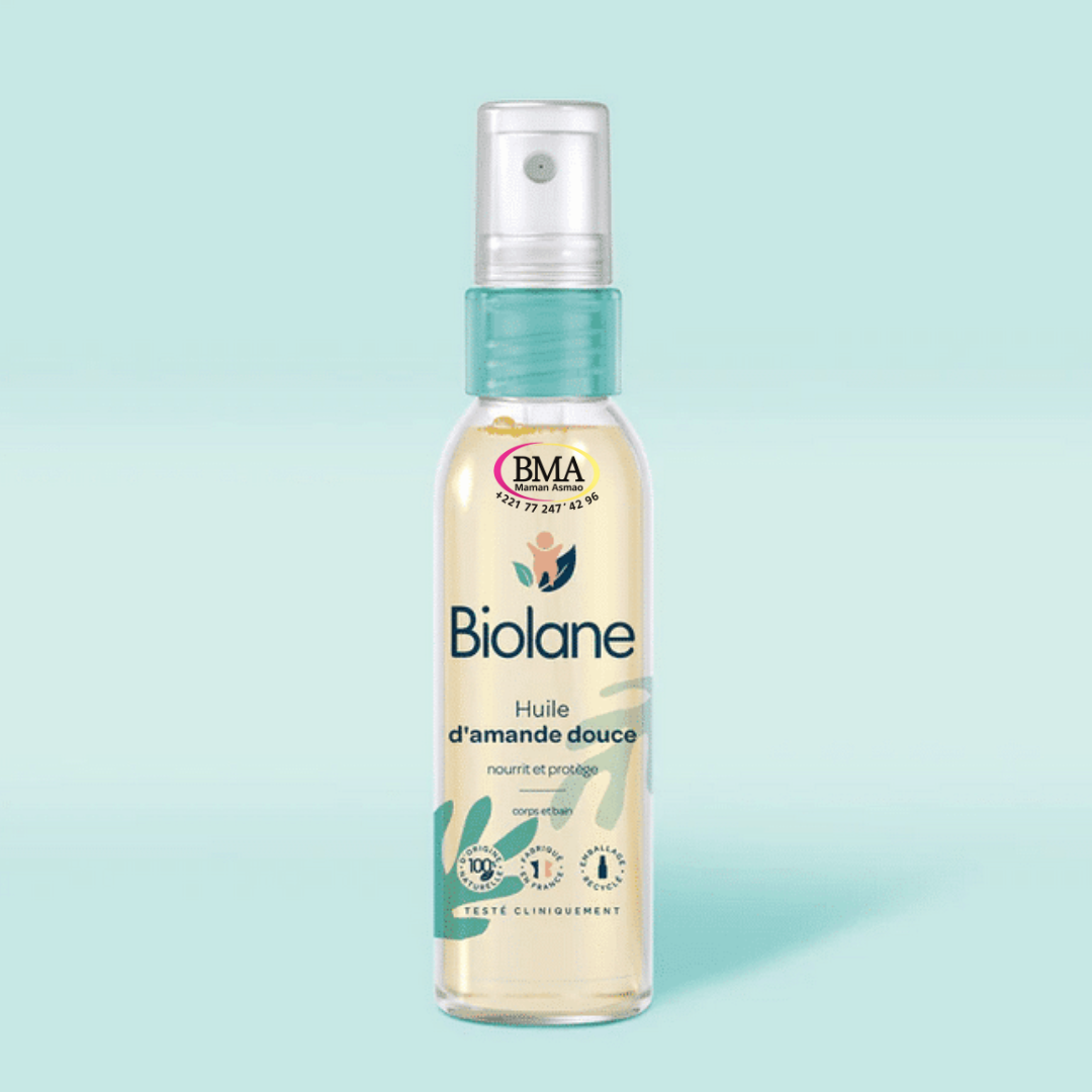 Spray d’huile d’amande douce Biolane, un soin polyvalent conçu pour la peau sensible et fragile de bébé.