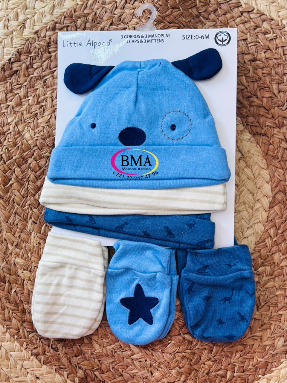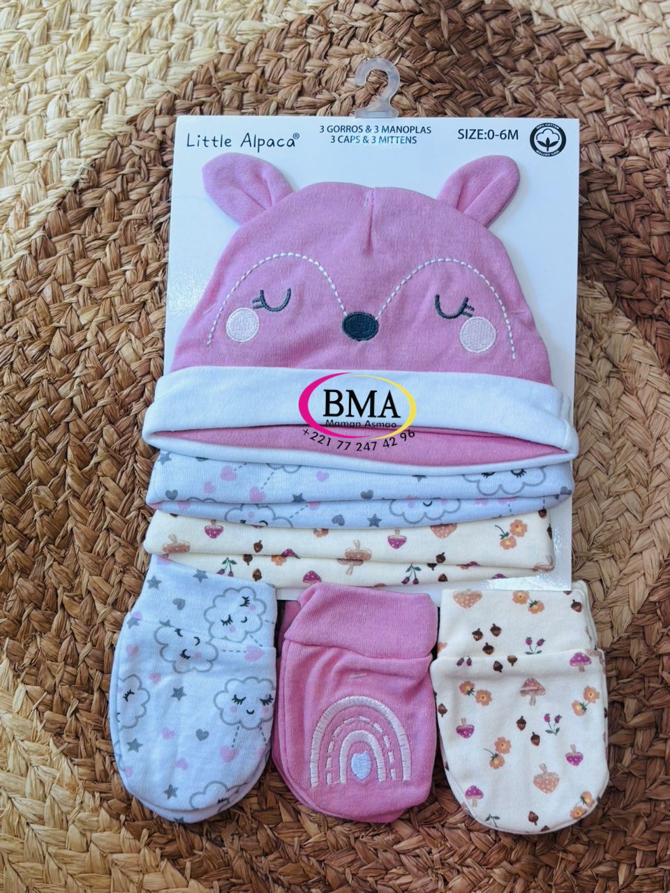 Lot de 3 bonnets et 3 moufles bébé