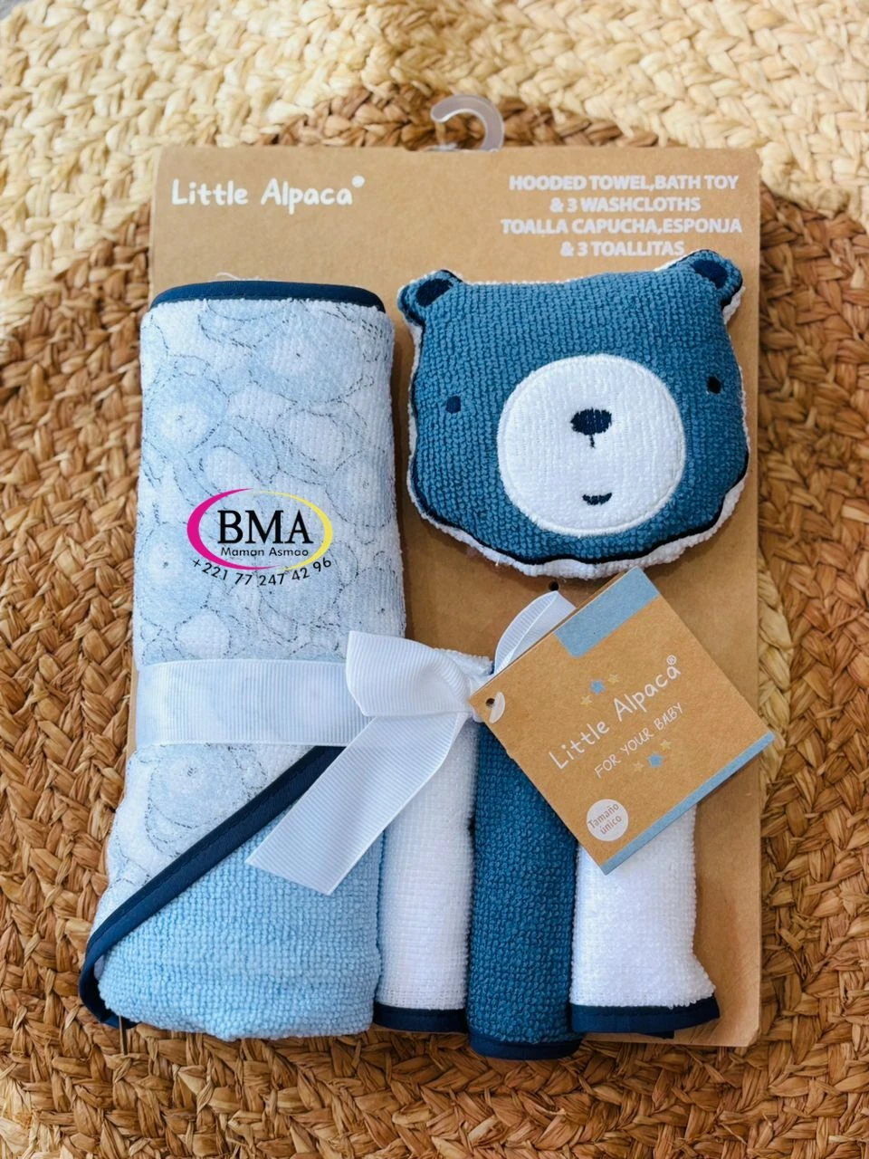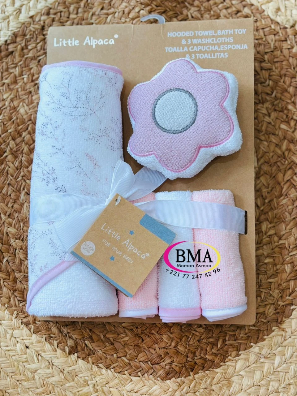 L’ensemble de bain Little Alpaca est un kit complet pour bébé, comprenant une serviette douce, un jouet de bain (éponge) et trois débarbouillettes assorties. Conçu pour envelopper bébé de douceur après le bain, cet ensemble combine praticité et confort pour les routines quotidiennes