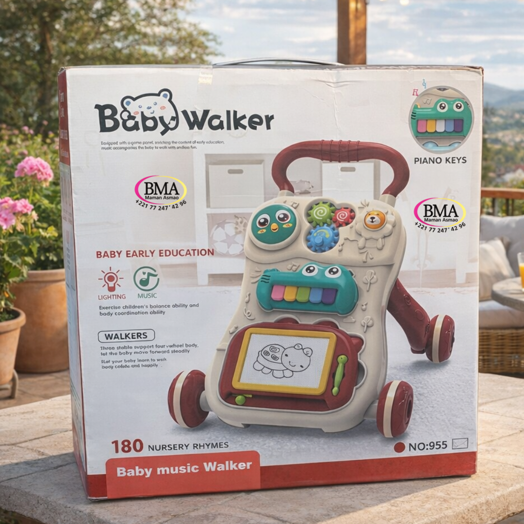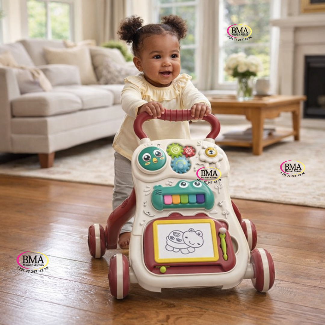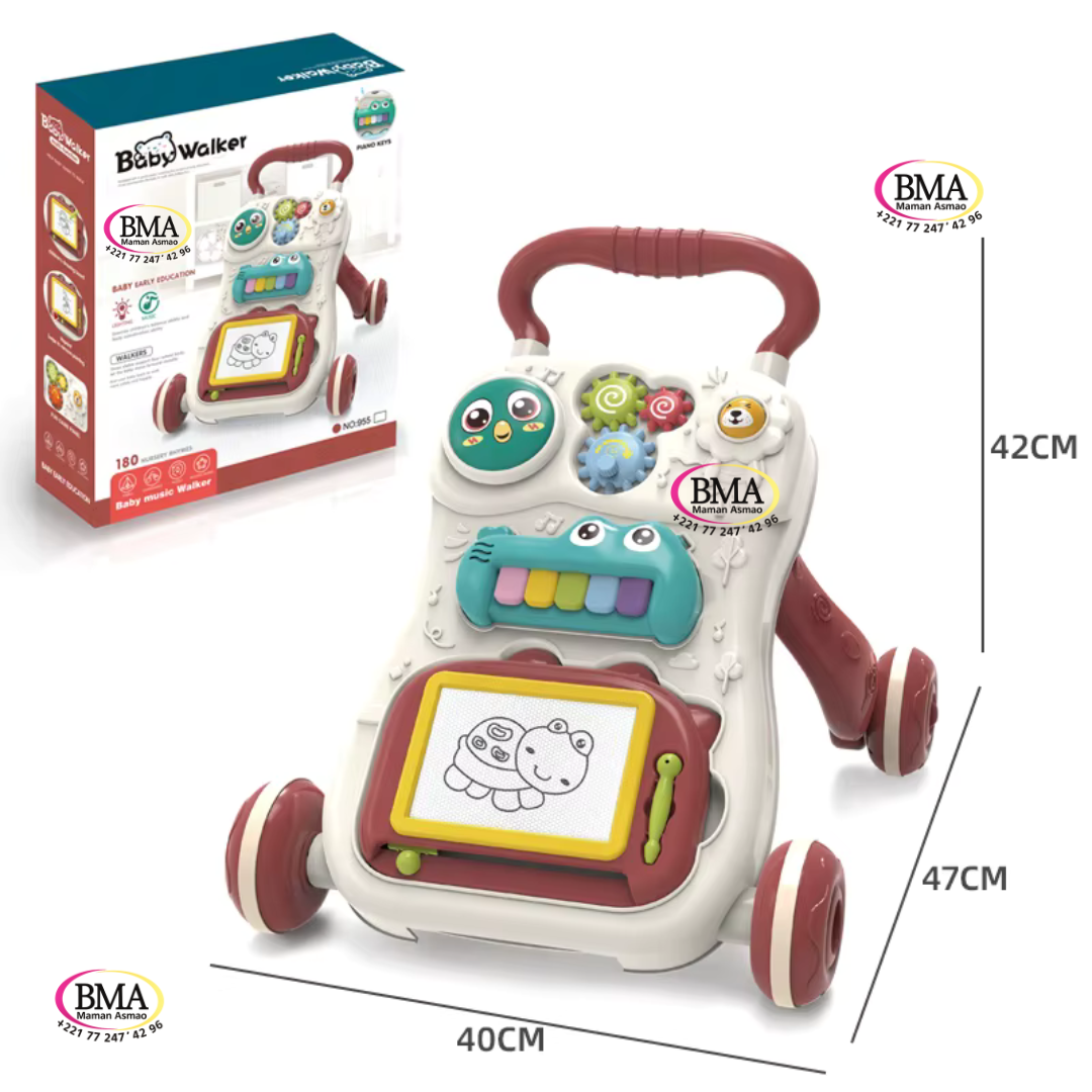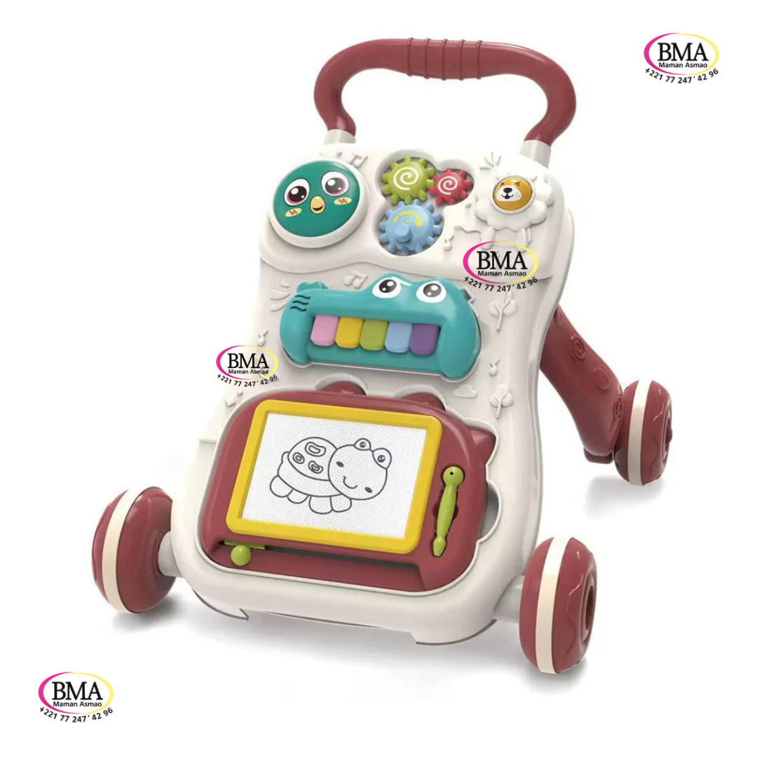 • Multifonctionnel Il combine les fonctions de trotteur et de panneau de jeu, avec un tableau à dessin détachable, un piano à touches lumineuses, des engrenages rotatifs, et plus encore.